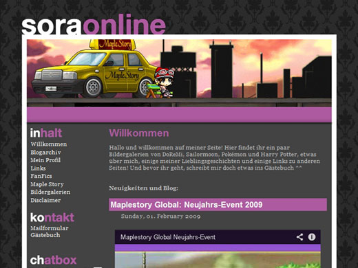Hier das neueste Seiten-Thema: Maple Urban Warrior von Mirai. Mein Profil wurde überarbeitet und unter Maplestory findet ihr nun auch die Statistik meiner Charaktere.